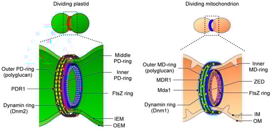 - Osteryoung, K.W.; Nunnari, J. The division of endosymbiotic organelles. Science 2003, 302, 1698–1704. [Google Scholar] [CrossRef] [PubMed]