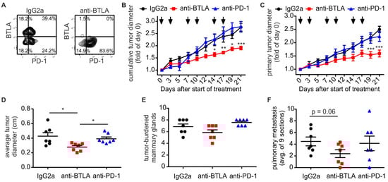 2.2. Downregulation of BTLA But Not PD-1 Blockade Reduces PyMT Mammary Tumor Progression