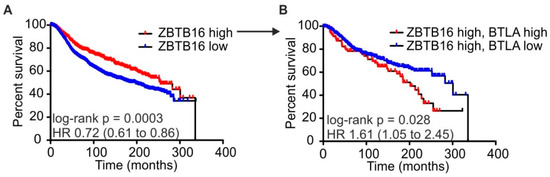 2.4. High BTLA and ZBTB16 Expression Defines a Subset of Breast Cancer Patients with Favorable Prognosis