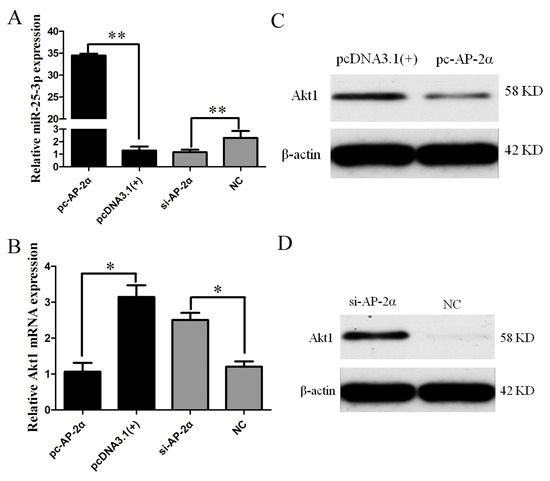 2.6. AP-2α Regulates miR-25-3p and Akt1 Expression