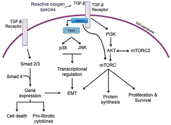 - Lamouille, S.; Derynck, R. Emergence of the phosphoinositide 3-kinase-AKT-mammalian target of rapamycin axis in transforming growth factor-beta-induced epithelial-mesenchymal transition. Cells Tissues Organs 2011, 193, 8–22. [Google Scholar] [CrossRef] [PubMed]
