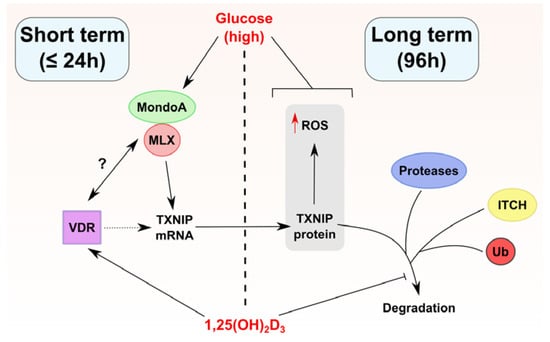 2.4. Induction in TXNIP Levels by 1,25(OH)2D3 Is Possibly Orchestrated through a Complex Interplay between Transcriptional Induction and Protein Stability