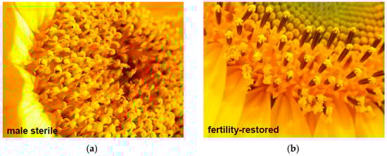 - Horn, R.; Reddemann, A.; Drumeva, M. Comparison of cytoplasmic male sterility based on PET1 and PET2 cytoplasm in sunflower (Helianthus annuus L.). In Proceedings of the 2016 19th International Sunflower Conference, Edirne, Turkey, 29 May–6 June 2016; pp. 620–629. [Google Scholar]