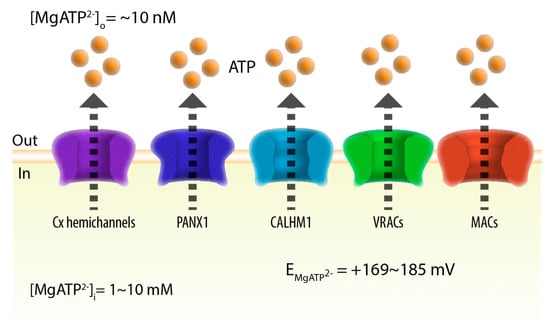 ATP; purinergic signaling; ion channel; connexin; pannexin; CALHM; VRAC; VSOR; maxi-anion channel 1. Introduction