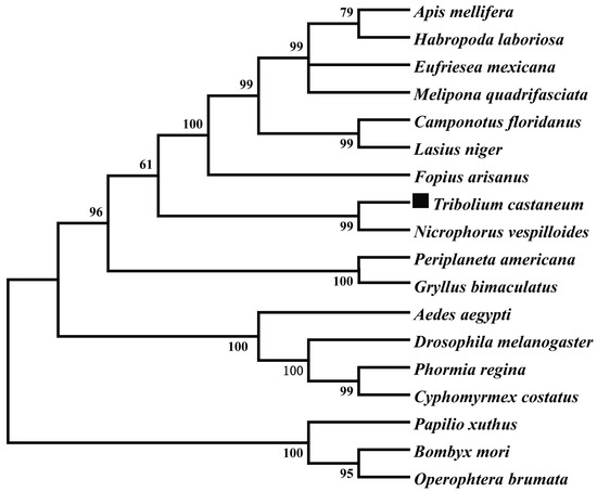 9. Hirashima, A.; Hirokado, S.; Tojikubo, R.; Takeya, R.; Taniguchi, E.; Eto, M. Metamorphosis of the red flour beetle, Tribolium freemani Hinton (Coleoptera: Tenebrionidae): Alteration of octopamine content modulates activity of juvenile-hormone esterase, ecdysteroid level, and pupation. Arch. Insect Biochem. Physiol. 1998, 37, 33–46. [Google Scholar] [CrossRef]