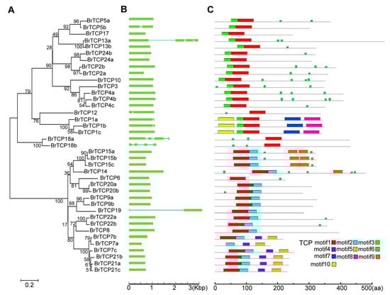 2.3. Phylogeny and Gene Structure of the BrTCP Family