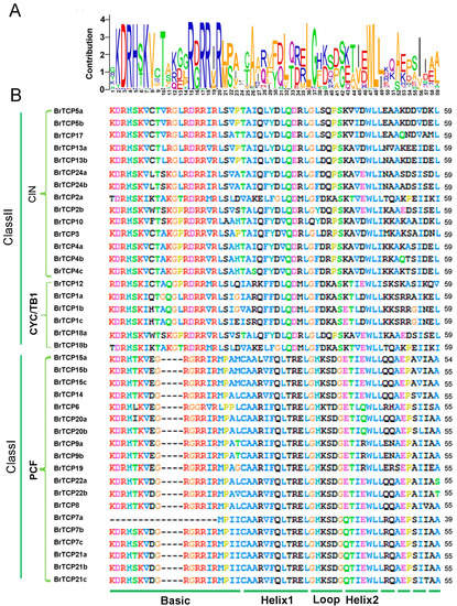 - Du, J.; Hu, S.; Yu, Q.; Wang, C.; Yang, Y.; Sun, H.; Yang, Y.; Sun, X. Genome-Wide Identification and Characterization of BrrTCP Transcription Factors in Brassica rapa ssp. rapa. Front. Plant Sci. 2017, 8, 1588. [Google Scholar] [CrossRef] [PubMed]