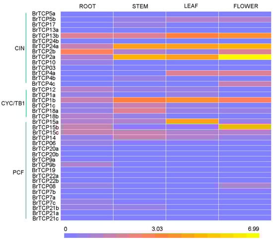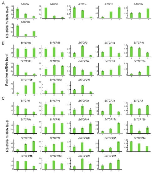 2.5. Expression Levels of TCP Genes in Chinese Cabbage