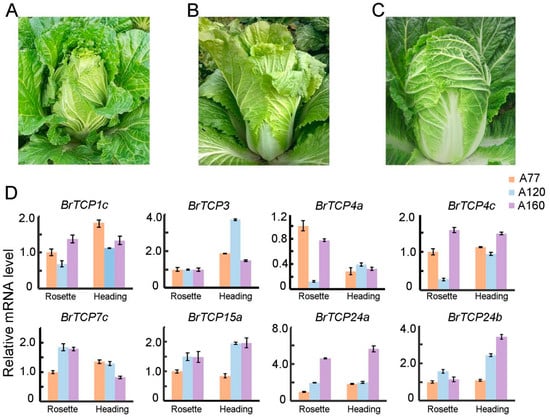 - Mao, Y.; Wu, F.; Yu, X.; Bai, J.; Zhong, W.; He, Y. MicroRNA319a-targeted Brassica rapa ssp. pekinensis TCP genes modulate head shape in chinese cabbage by differential cell division arrest in leaf regions. Plant Physiol. 2014, 164, 710–720. [Google Scholar] [CrossRef] [PubMed]