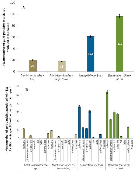 - An, Q.; Ehlers, K.; Kogel, K.H.; van Bel, A.J.E.; Hückelhoven, R. Multivesicular compartments proliferate in susceptible and resistant MLA12-barley leaves in response to infection by the biotrophic powdery mildew fungus. New Phytol. 2006, 172, 563–576. [Google Scholar] [CrossRef] [PubMed]