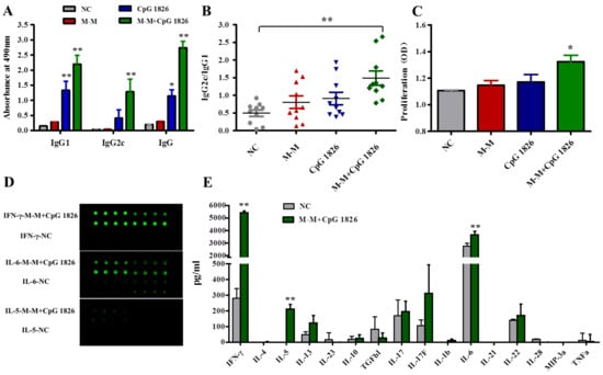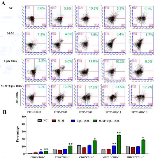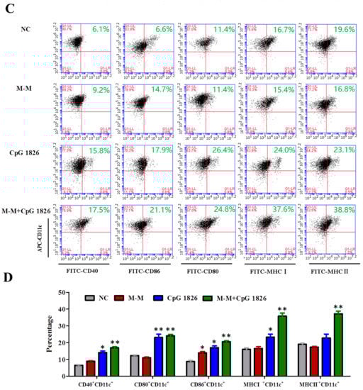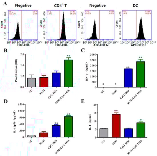 2.4. Combination of M-M and CpG 1826 Promotes the Th1 Polarization of CD4+ T Cell Co-Cultured with BMDCs