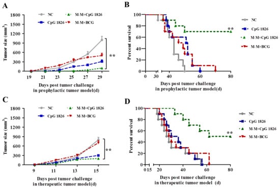 2.5. Combination of M-M and CpG 1826 Enhanced the Prophylactic and Therapeutic Antitumor Immune Activity