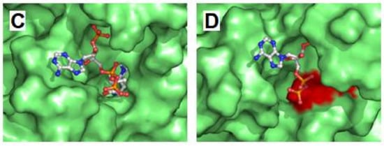 Modeled structures were subjected to molecular dynamics simulation using the AMBER14 molecular dynamics package []. The 3D structures were solvated with periodic cuboid pre-equilibrated solvent boxes using the LEaP module of AMBER, with 12 Å as the shortest distance between any atom in the protein and the periodic box boundaries. Free MD simulations were performed using the PMEMD program of AMBER and the parm99 force field [], using the SHAKE algorithm. Systems were initially relaxed over 15,000 steps of energy minimization with a cut-off of 12 Å. Simulations were then started with a 20 ps heating phase, raising the temperature from 0 to 300 K in 10 steps. During minimization and heating, the Cα trace dihedrals were restrained and gradually released in an equilibration phase in which the force constant was gradually reduced to 0 over 200 ps. After the equilibration phase, 120 ns of free molecular dynamics simulations were obtained for wild type and mutant structures. Root mean square deviation (rmsd) of Cα trace was monitored along the trajectories, measuring it every 20 ps. In addition, a set of distances between the Cα of residues in the active center was also continuously measured to analyze the adequate spatial arrangement for enzymatic reaction. Molecular dynamics trajectories were analyzed using VMD software []. Figures were generated using the Pymol Molecular Graphics System (Schrödinger, LLC, Portland, OR, USA).