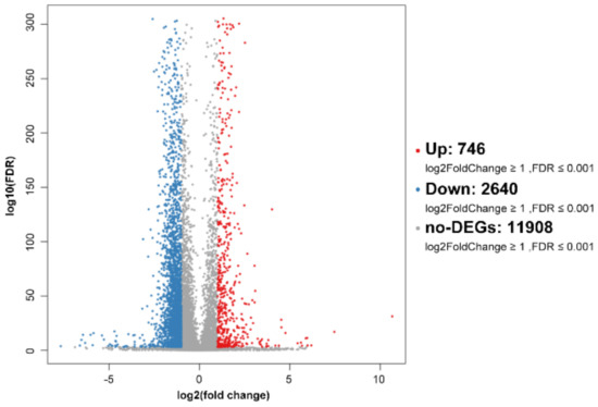 Raw reads acquired by sequencing were filtered to remove the adaptor reads, reads with unknown bases more than 10% and low-quality reads (the ratio of the bases with quality value Q ≤ 15 greater than 50%) using the SOAP nuke software (available online: http://soap.genomics.org.cn/). Clean reads were mapped to reference genome using HISAT software (available online: http://www.ccb.jhu.edu/software/hisat). Bowtie2 (available online: http://bowtie-bio.sourceforge.net/Bowtie2/index.shtml) was used to map the clean reads to the reference genes, and the gene-expression level was quantified by RSEM with default parameters (available online: http://deweylab.biostat.wisc.edu/RSEM). PossionDis was used to determine significantly differentially expressed genes (DEGs) after SPPH treatment (fold change ≥2.00 and false discovery rate (FDR) ≤0.001).