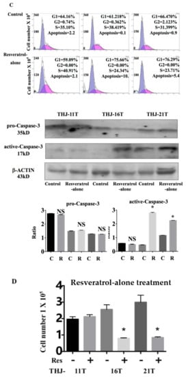 2.2. Resveratrol Suppresess the Growth of THJ-16T and THJ-21T Cells