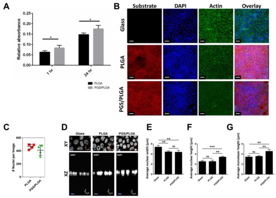 2.2. SIMS Cell Growth on PGS/PLGA Nanofiber Substrates