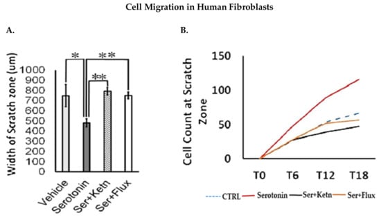 2.2. Serotonin Positively Regulates Cell Migration (In Vitro Model)