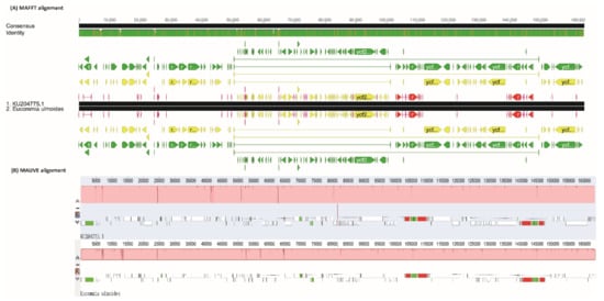 - Darling, A.C.; Mau, B.; Blattner, F.R.; Perna, N.T. Mauve: Multiple alignment of conserved genomic sequence with rearrangements. Genome Res. 2004, 14, 1394–1403. [Google Scholar] [CrossRef] [PubMed]