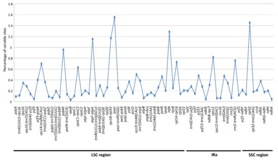 - Ahmed, I.; Matthews, P.J.; Biggs, P.J.; Naeem, M.; Mclenachan, P.A.; Lockhart, P.J. Identification of chloroplast genome loci suitable for high-resolution phylogeographic studies of Colocasia esculenta (L.) Schott (Araceae) and closely related taxa. Mol. Ecol. Resour. 2013, 13, 929–937. [Google Scholar] [CrossRef] [PubMed]