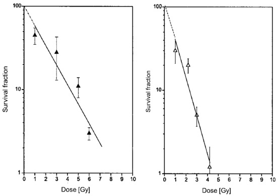 3.3. Radiosensitivity of BHM Growing in the Skin