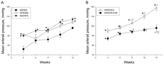 - Tain, Y.L.; Lee, W.C.; Wu, K.L.H.; Leu, S.; Chan, J.Y.H. Maternal high fructose intake increases the vulnerability to post-weaning high-fat diet-induced programmed hypertension in male offspring. Nutrients 2018, 10, 56. [Google Scholar] [CrossRef] [PubMed]