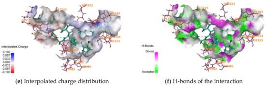 The structure of the peptide and the complex of it and ACE are shown in Figure 5a,b, which indicated that the peptide was a linear peptide, and its size was important for the inhibitory activity against ACE. There are three categories of interactions between EPNGLLLPQY as the ligand and ACE as the donor, electrostatic, hydrogen bond and hydrophobic interactions, and the majority of interactions were hydrogen bonds (Table 3). A total of 16 H-bonds has been found in the interactive site between the peptide EPNGLLLPQY and ACE, which is also shown in Figure 5c,d, including 10 amino acid residues in ACE, i.e., ASN66, LYS118, ASP121, GLU123, HIS353, ALA354, SER355, HIS387, SER516 and ARG522, as shown in Figure 5e. Among these residues, GLU123 and ARG522 also formed H-bonds with the ACE-inhibitory peptides (WG and PRY), as reported by Fu et al. [27]. SER516 was also identified in the C-domain complex of ACE-BPPb [28]. The large amount of ACE residues formed in ACE peptides by H-bonds could explain the greater interaction between ACE and peptides. Seven hydrophobic interactions have been found in the interactive site between the peptide and ACE, including six amino acid residues in ACE, i.e., TYR62, ALA63, MET223, ALA354, TYR360 and HIS383. Moreover, electrostatic interactions at the site of LYS117, ASP121 and ZN701 in ACE-EPNGLLLPQY also contributed to stabilization, as shown in Figure 5f. These results suggested that the intensive interactions of EPNGLLLPQY with ACE may contribute to its strong inhibitory activity.