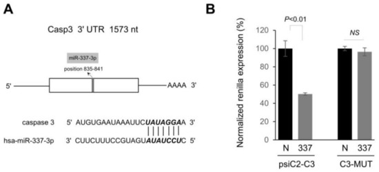 2.3. miR-337-3p Directly Targets Caspase-3