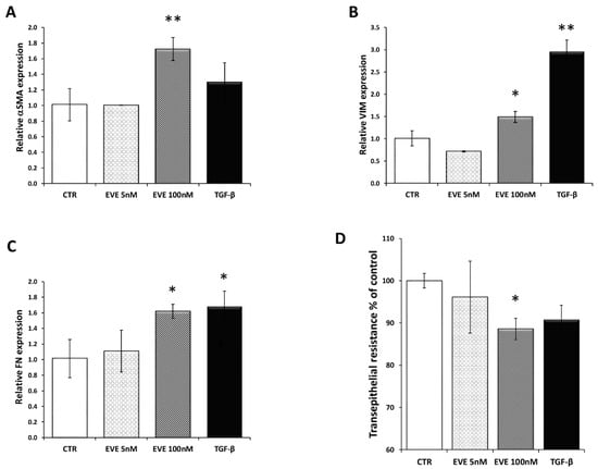 2.1. High Dosage Everolimus (EVE) Induced Epithelial to Mesenchymal Transition (EMT) of BE63/3 (Primary Bronchial Epithelial Cells)
