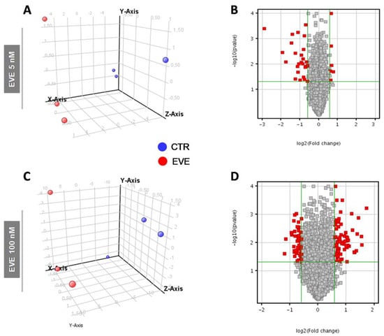 2.3. MiRNome Analysis Identified Specific MicroRNAs Deregulated by EVE