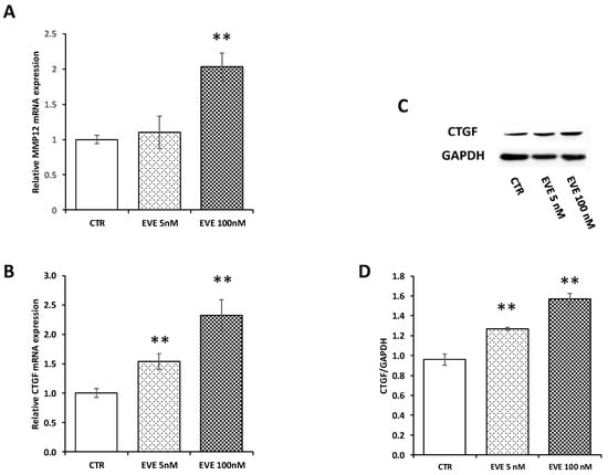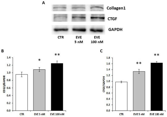 2.6. High Dosage EVE Up-Regulated CTGF and Collagen1 in Fibroblasts and Hepatic Stellate Cells