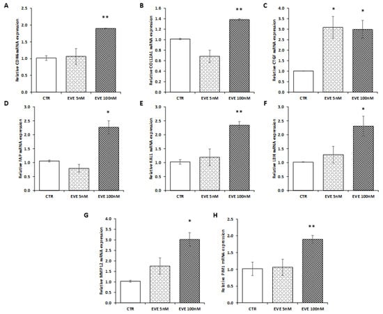 2.2. Transcriptomic Analysis Revealed That High Dosage of EVE Up-Regulated Genes Involved in Collagen Synthesis and Metabolism