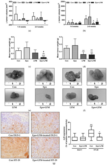 2.3. Anti-Colon Cancer Activity of the Simultaneous Use of Epo and LFM-A13 in Mouse Xenografts
