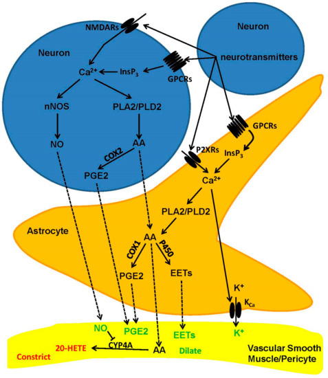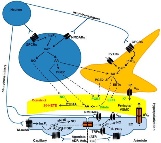 2.2. Cellular and Biochemical Pathways of Neurovascular Coupling: The Role of Neurons and Astrocytes in Arterioles and Capillaries