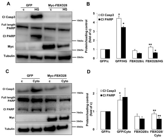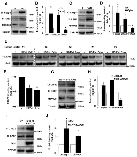 2.2. Overexpression of FBXO28 Protects β-Cells from Apoptosis