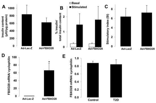 2.4. FBXO28 Overexpression Does Not Improve β-Cell Function in T2D Human Islets