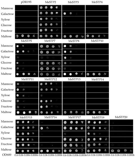 4.7. Complementation Analysis of MeSTPs in Yeast (Saccharomyces cerevisiae)