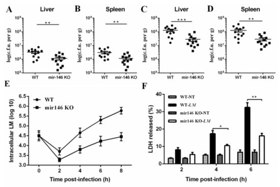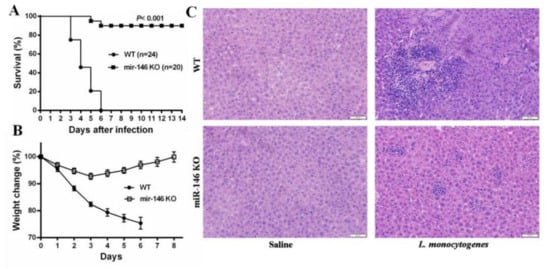 2.2. MiR-146a Knockout (KO) Mice Are Resistant to L. monocytogenes Infection