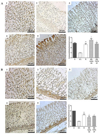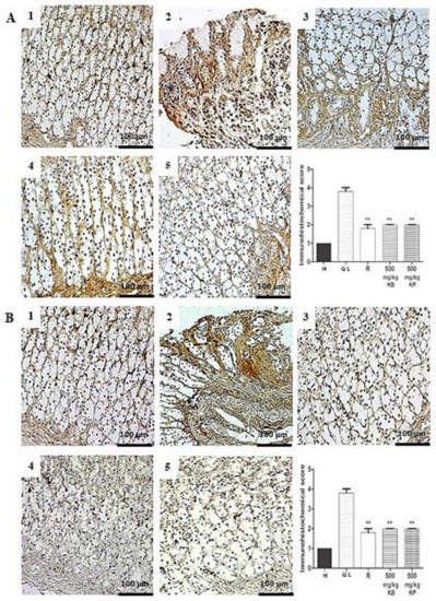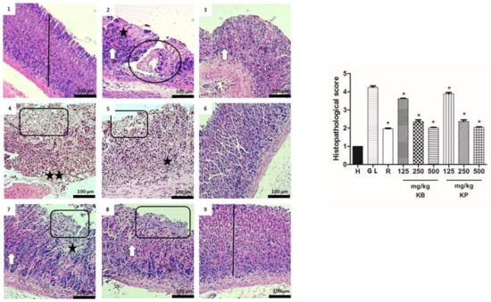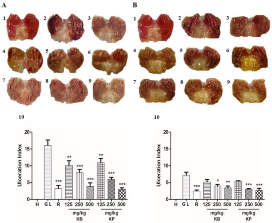 - Suleyman, H.; Albayrak, A.; Bilici, M.; Cardici, E.; Halici, Z. Different mechanisms in formation and prevention of indomethacin-inducd gastric ulcers. Inflammation 2010, 3, 224–234. [Google Scholar] [CrossRef] [PubMed]