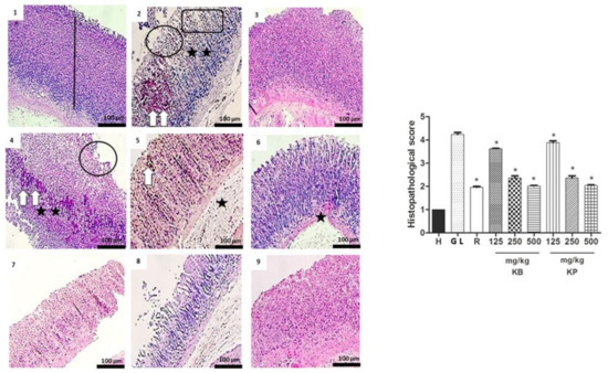 - Kangwan, N.; Park, J.M.; Kim, E.H.; Hahm, K.B. Quality of healing of gastric ulcers: Natural products beyond acid suppression. World J. Gastrointest. Pathophysiol. 2014, 5, 40–47. [Google Scholar] [CrossRef] [PubMed]