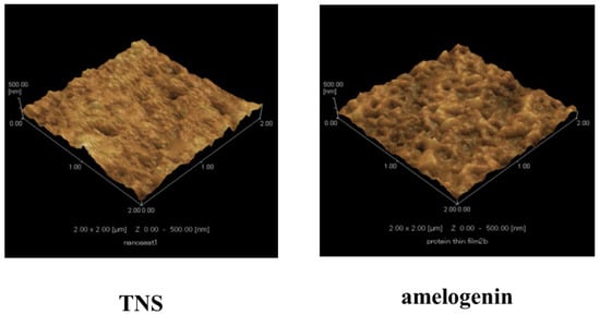 Figure 5 shows the adsorption of amelogenin based on the test and control groups. An immediate decrease in frequency was observed after the injection of amelogenin, which was identified as indicative of the adsorption of amelogenin. The adsorption of albumin and amelogenin on the TNS-modified titanium QCM sensor produced a decrease in frequency that was greater than that measured for the Ti sensor.