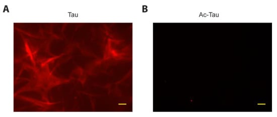- Cohen, T.J.; Friedmann, D.; Hwang, A.W.; Marmorstein, R.; Lee, V.M. The microtubule-associated tau protein has intrinsic acetyltransferase activity. Nat. Struct. Mol. Biol. 2013, 20, 756–762. [Google Scholar] [CrossRef] [PubMed]