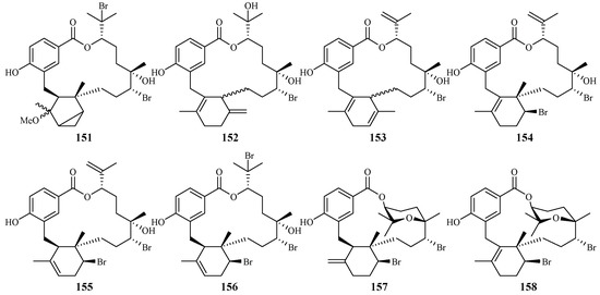 - Lane, A.L.; Stout, E.P.; Lin, A.S.; Prudhomme, J.; le Roch, K.; Fairchild, C.R.; Franzblau, S.G.; Hay, M.E.; Aalbersberg, W.; Kubanek, J. Antimalarial bromophycolides J-Q from the Fijian red alga Callophycus serratus. J. Org. Chem. 2009, 74, 2736–2742. [Google Scholar] [CrossRef] [PubMed]