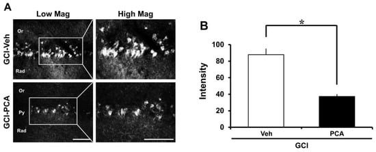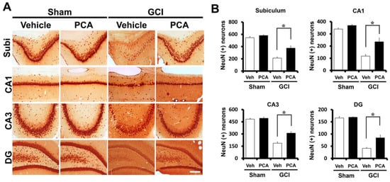2.1. PCA Reduces Neuronal Death after Global Ischemia