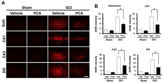 2.2. PCA Reduces Ischemia-Induced Oxidative Injury