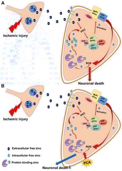 - Suh, S.W.; Shin, B.S.; Ma, H.; Van Hoecke, M.; Brennan, A.M.; Yenari, M.A.; Swanson, R.A. Glucose and NADPH oxidase drive neuronal superoxide formation in stroke. Ann. Neurol. 2008, 64, 654–663. [Google Scholar] [CrossRef] [PubMed]