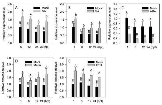 2.2. The Transcriptional Expression of CaWRKY22 Is Upregulated by R. Solanacearum Infection and Exogenous Applied Phytohormones Including SA, MeJA, and ETH