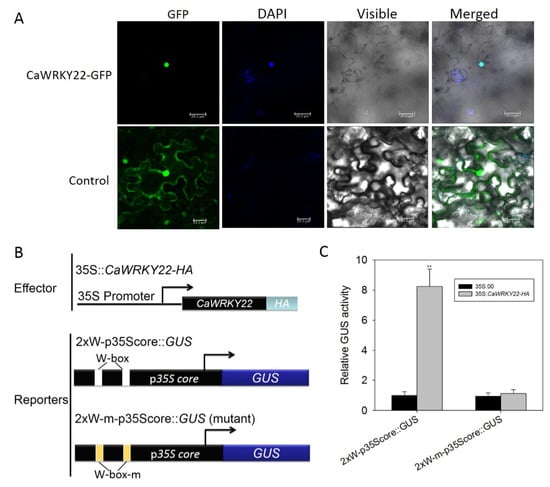 4.5. Analysis of CaWRKY22 Subcellular Localization