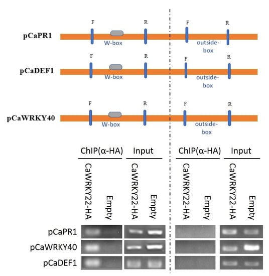 2.6. CaWRKY22 Binds to the W-Box Containing Promoter Fragment but Not the Fragments without W-Box