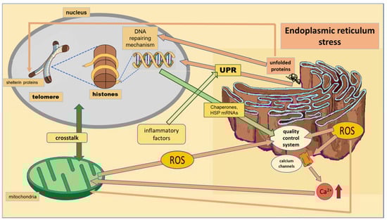 | Endoplasmic Reticulum | Expression of chaperones and heat shock proteins that prevent unfolding or misfolding of proteins is a target of epigenetic markers [26]. | -metabolic diseases: metabolic syndrome, obesity and diabetes [27,28]. | |