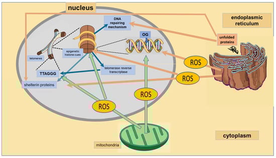 - Von Zglinicki, T. Role of oxidative stress in telomere length regulation and replicative senescence. Ann. N. Y. Acad. Sci. 2000, 908, 99–110. [Google Scholar] [CrossRef] [PubMed]